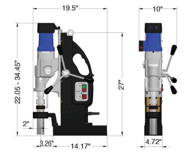 - Emergency-off function: electronic safety sensor shuts down drill motor if magnet loses contact with material to protect operator and equipment