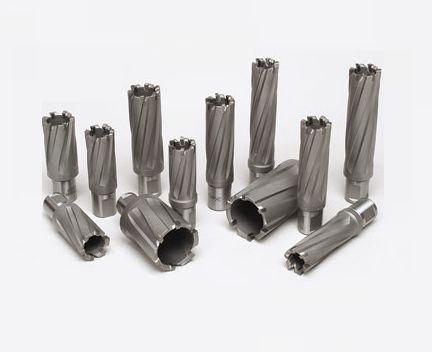 Los cortadores anulares y las sierras para orificios con punta de carburo de CS Unitec producen orificios 3 veces más rápidamente que las brocas helicoidales y los orificios son limpios y libres de rebabas. Las ranuras se extienden a lo largo del cortador para despejar las virutas eficazmente, menos vibración, menor roturas de cortadores y aumento en la productividad de la perforación sin perforación previa y sin perforación escalonada. Los cortadores anulares están disponibles en acero endurecido de alta velocidad, nitruro de titanio y aluminio (TiAlN), carburo de tungsteno, carburo y cobalto.
