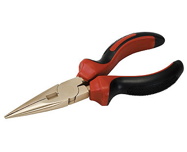 - Non-sparking long nose pliers for use in petrochemical, grain production (explosive-dust), utilities, and hazmat applications.